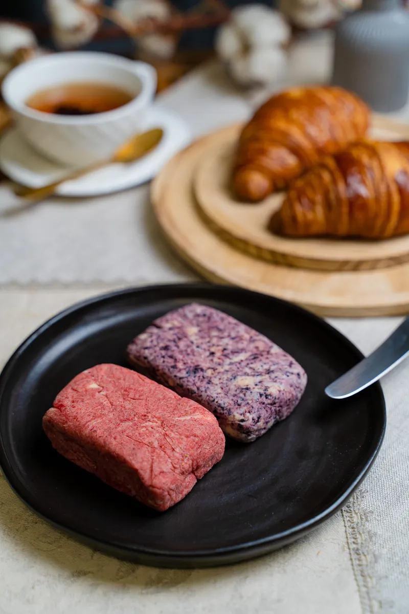 - Ягодное масло — создано только из сливочного масла 92% жирности и сушеных ягод, без сахара и консервантов. Идеально подходит для завтраков, выпечки и хрустящих круассанов.
