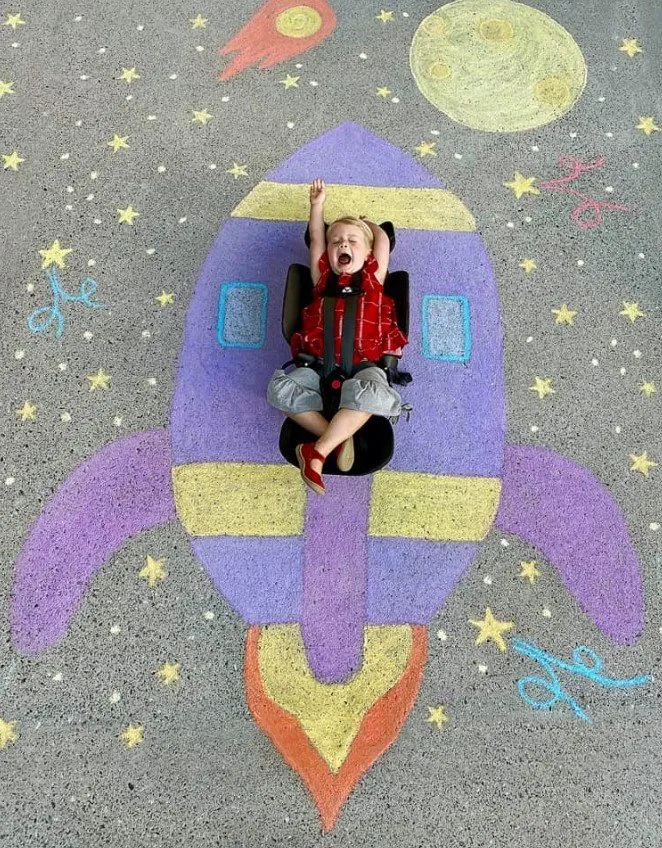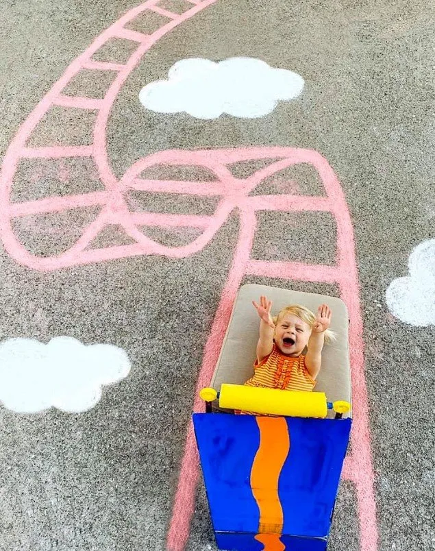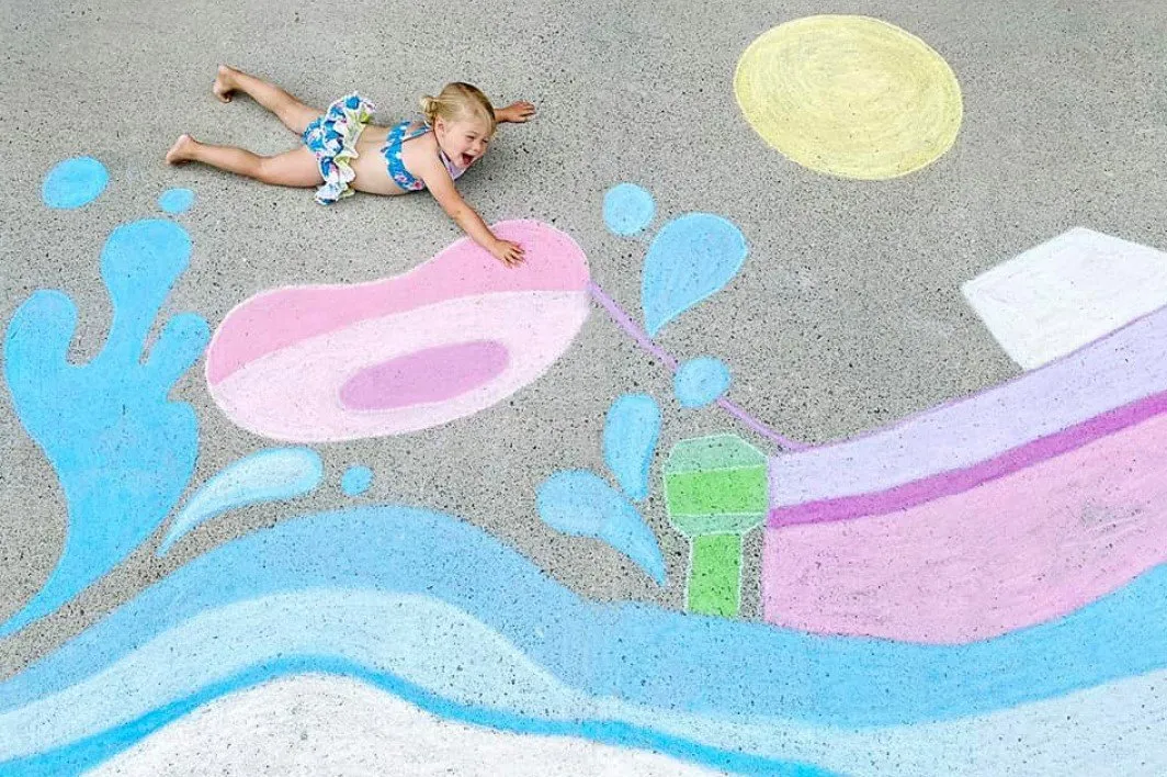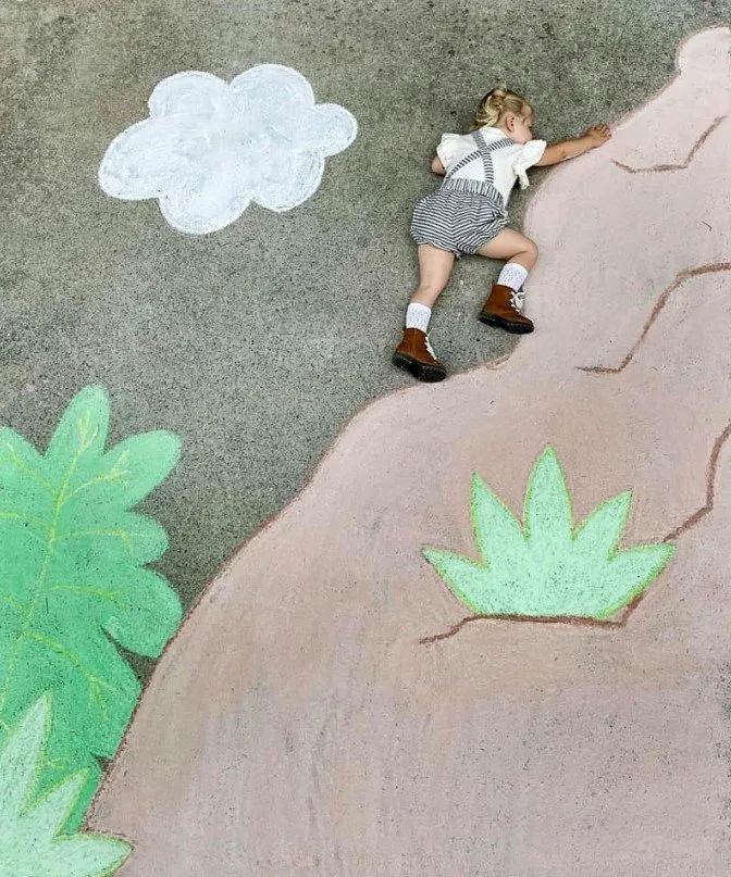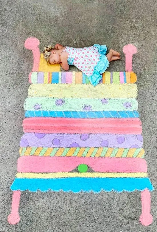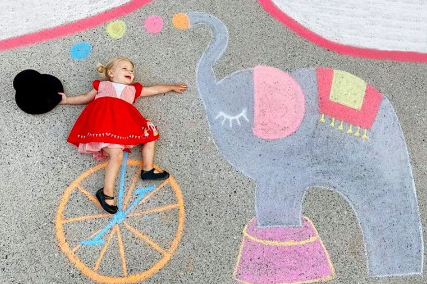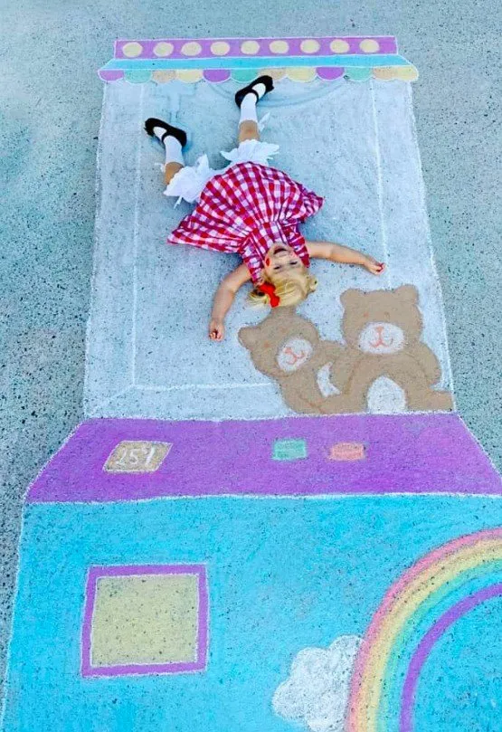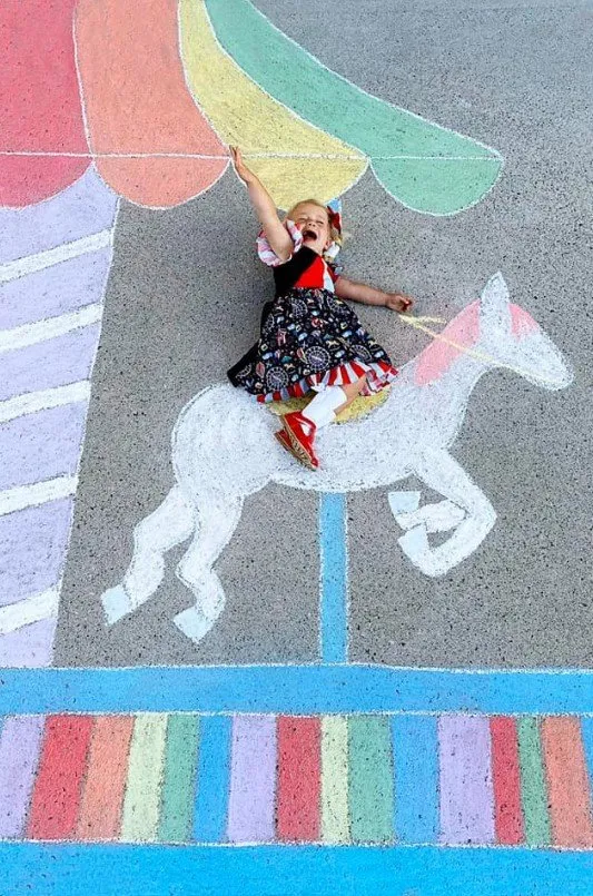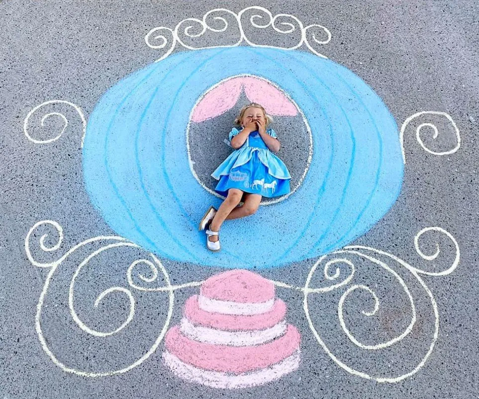 Она потратила несколько недель, придумывая причудливые рисунки мелом для своей трехлетней Шарлотты, чтобы дочь смогла исполнить в них главную роль. Эбби регулярно загружает изображения в альбом Charlottes Chalk Adventures на своей страничке в Facebook.