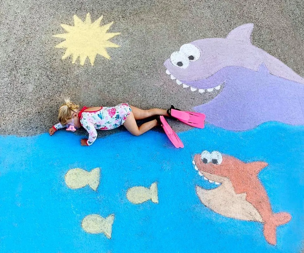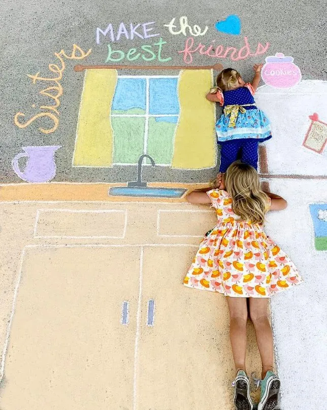 Эбби Бернс Такер из США и ее четыре дочери безвылазно сидят дома с тех пор, как в начале апреля их штат закрыли на карантин. В это непростое время Эбби решила познакомить девочек с прелестями рисования мелками на бетоне.