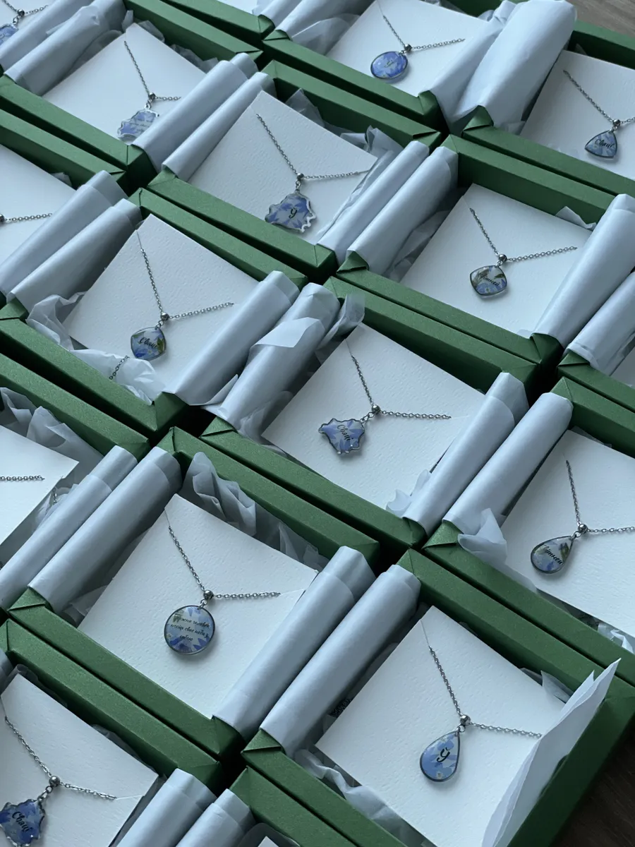 - Уникальная услуга: Юлия может сохранить в украшении ваши личные ценности: первый цветок, подаренный ребенком, лепестки из свадебного букета или ракушку из отпуска, превратив их в семейную реликвию.