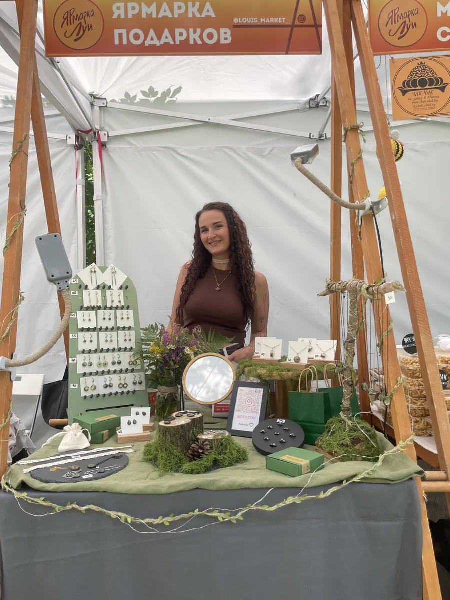 - Стильные аксессуары: Особого внимания заслуживает бренд НИМФА с их экологичными заколками и резинками из натурального льна без капли клея. Также здесь представлены украшения из натуральных камней (Екатерина Титовец), авторские изделия из меди (Алеся Кирис), оригинальные браслеты и броши от Виктории Смирновой, а также изящные серьги и чокеры от Юлии Чумак.