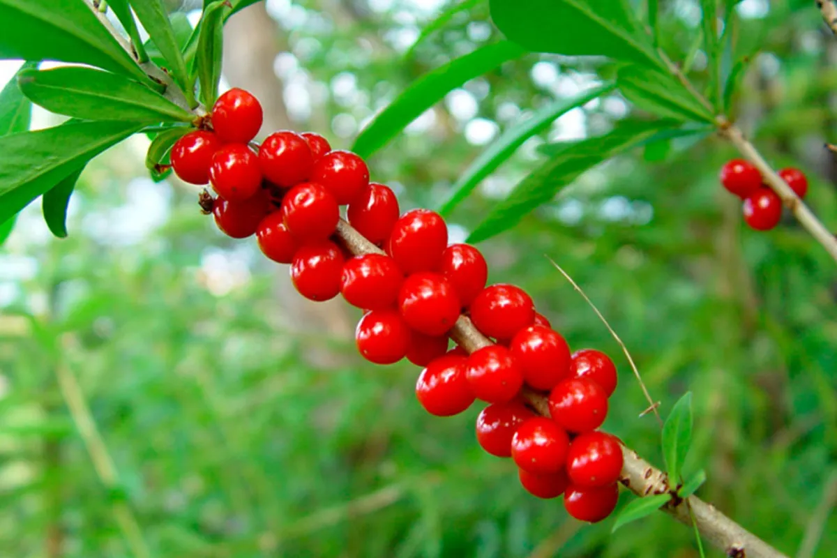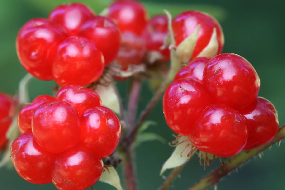 Описание: Кустарник с красными ягодами, похожими на малину. Произрастает в лесных и горных районах. Неспелые ягоды содержат токсичные вещества, которые могут вызвать отравление симптомами, такими как тошнота, рвота и расстройства желудка.