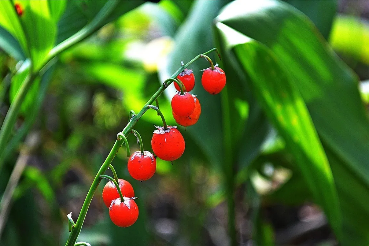 Описание: Небольшие ягоды ярко-красного цвета на низкой травянистой растении. Произрастает в тенистых лесах, на лугах, склонах.Все части растения, включая ягоды, содержат ядовитые вещества, которые могут вызвать отравление симптомами, такими как рвота, диарея и нарушения сердечного ритма.