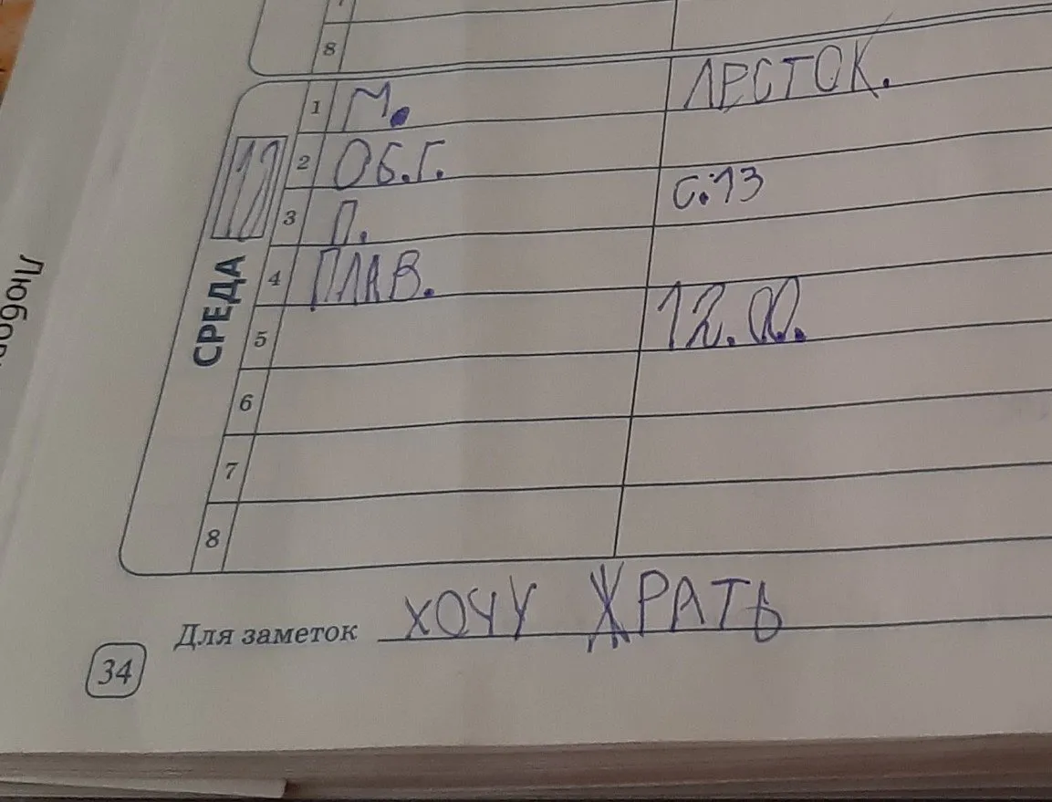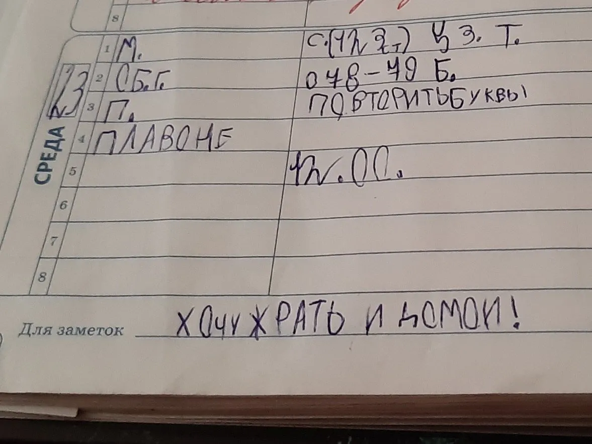 Мама из Перми развеселила пользователей Твиттера фотографиями дневника своего сына-первоклассника (и собрала несколько тысяч лайков). Школьник слишком буквально воспринял фразу «для заметок» и начал делиться в этой графе своими переживаниями.