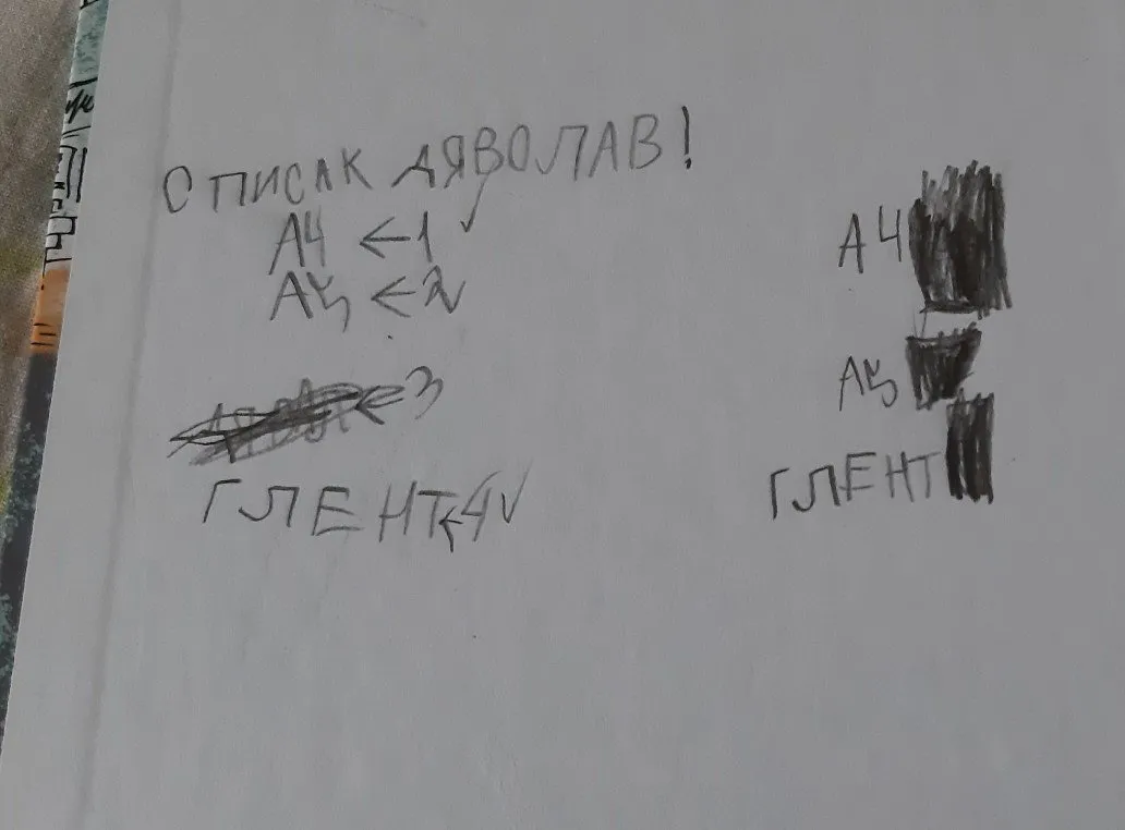 На форзаце дневника ребенок составил «список дьяволов», где перечислил некоторых известных видеоблогеров, например, Влада Бумагу (он же A4) и Глента.