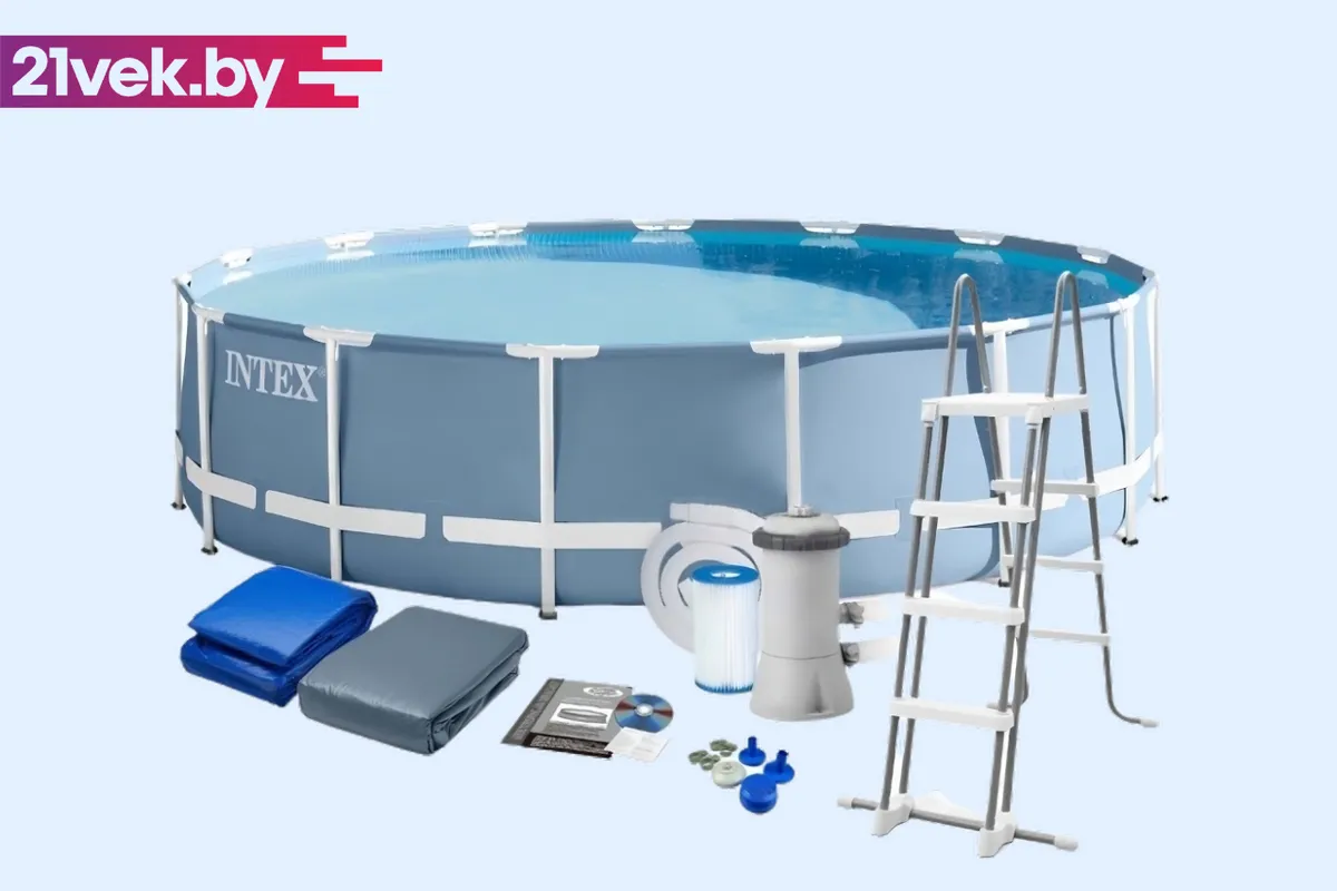 Объем бассейна - 16805 л (90% наполнения), диаметр - 457 см, глубина - 122 см. Комплектация: картриджный фильтр-насос, лестница, подстилка, тент-чехол.Подробнее