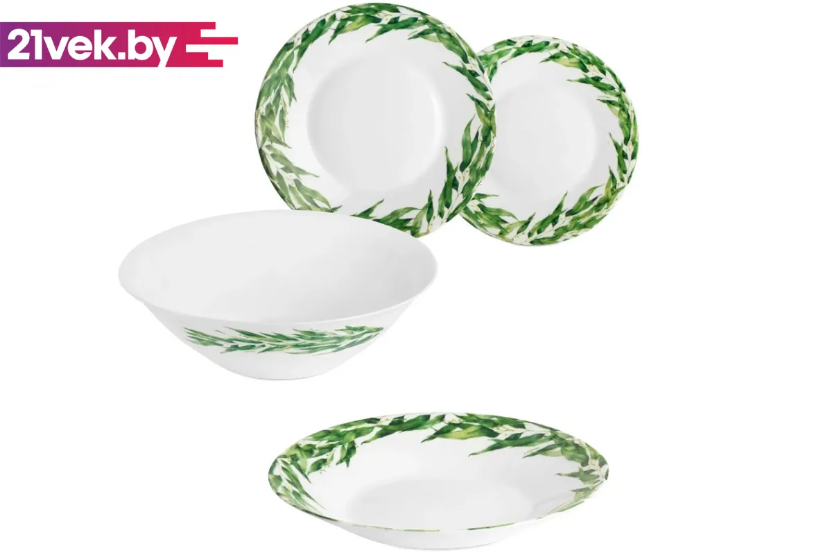 19 предметов: салатник, тарелка закусочная/десертная (6 шт.), тарелка столовая глубокая (6 шт.), тарелка столовая обеденная (6 шт.)Подробнее