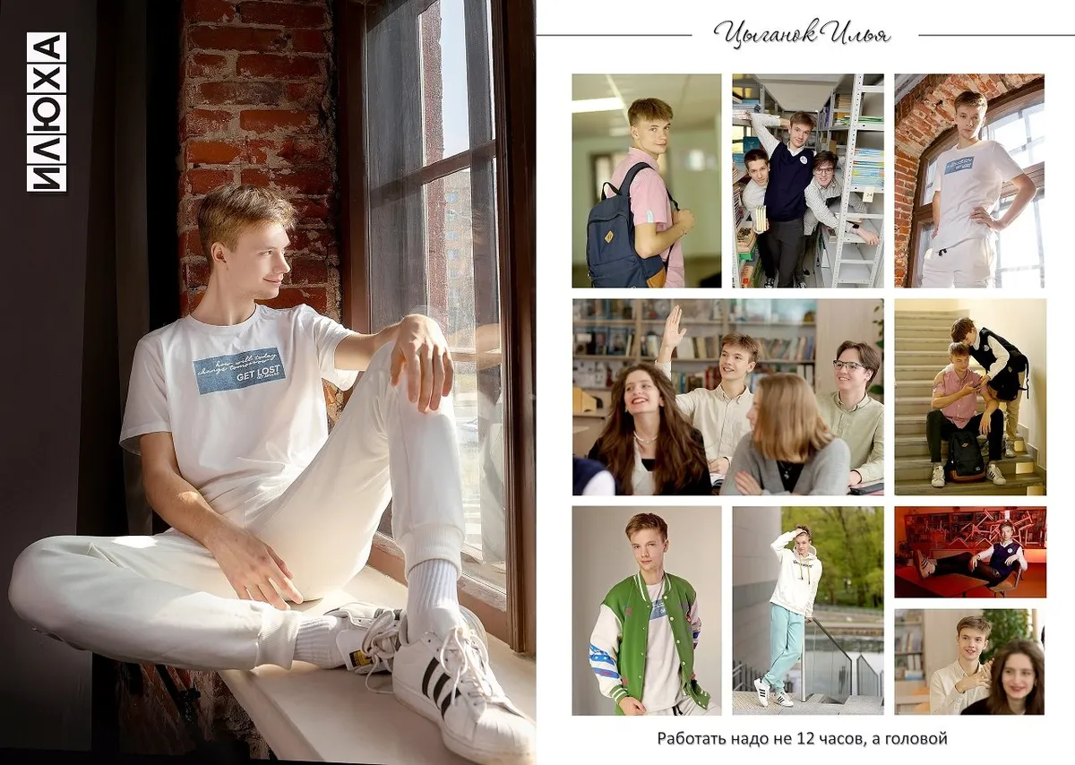 Благодаря большому опыту общения с подростками он находит подход к каждому, создавая максимально разнообразные и интересные портреты. В выпускном альбоме старшеклассников обычно представлено 5–9 различных портретов, что даёт возможность каждому ученику выбрать лучший кадр.