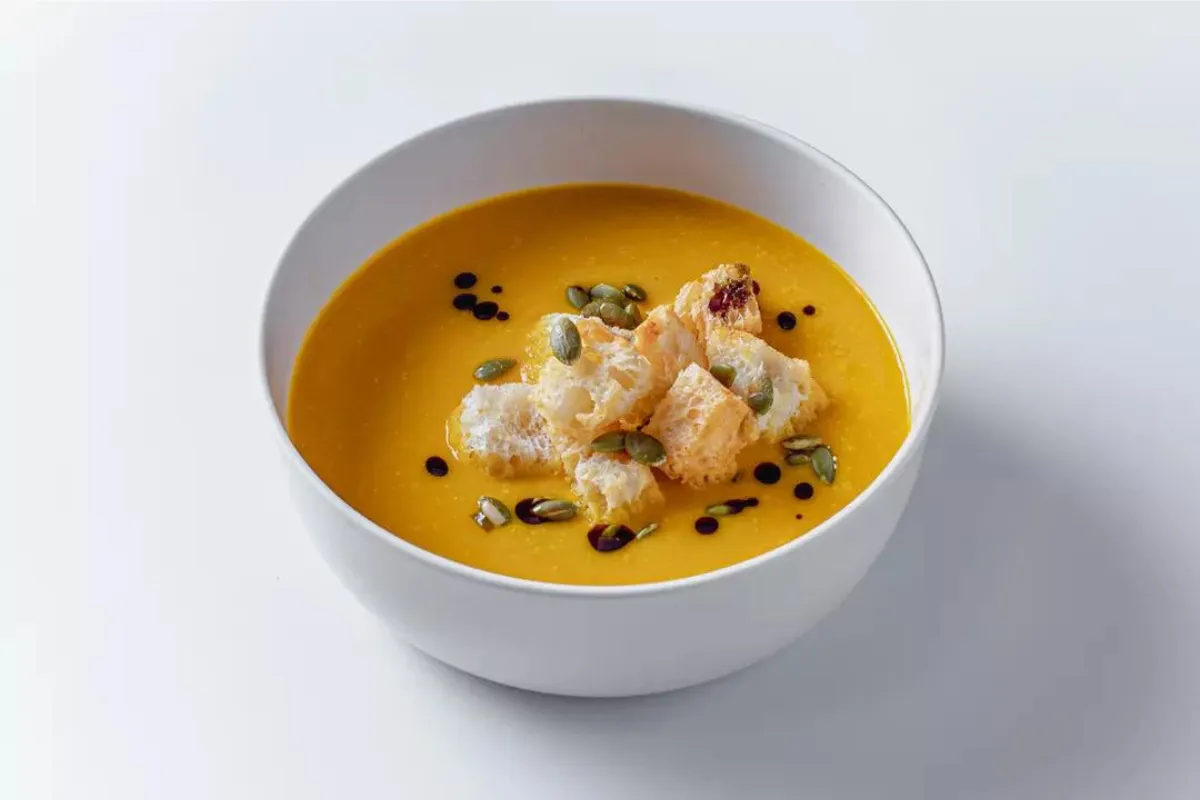 Тыквенный суп-пюре – это классическое осеннее блюдо, которое согреет в прохладные дни. Для его приготовления вам понадобятся тыква, лук, чеснок, морковь и сливки. Все овощи нужно нарезать, лук почистить, а у чеснока срезать только верхушку (после запекания он станет мягким и будет прекрасно "выдавливаться") и запечь в духовке до мягкости, полив оливковым маслом и посыпав специями. Я рекомендую использовать сладкую паприку и куркуму. После запекания перекладываем мякоть тыквы, морковку, лук в кастрюлю или любую удобную емкость. Туда же выдавливаем наш запеченный чеснок и взбиваем все это блендером. После добавляем сливки. Можно и в кастрюлю, и порционно - по желанию.Рекомендую также сделать к этому вкуснейшему осеннему супу сухарики из белого хлеба. Тут все очень просто: нарезаем хлеб кубиками, посыпаем солью, сухим чесноком и итальянскими травами, поливаем оливковым маслом, перемешиваем и запекаем минут 10-15.