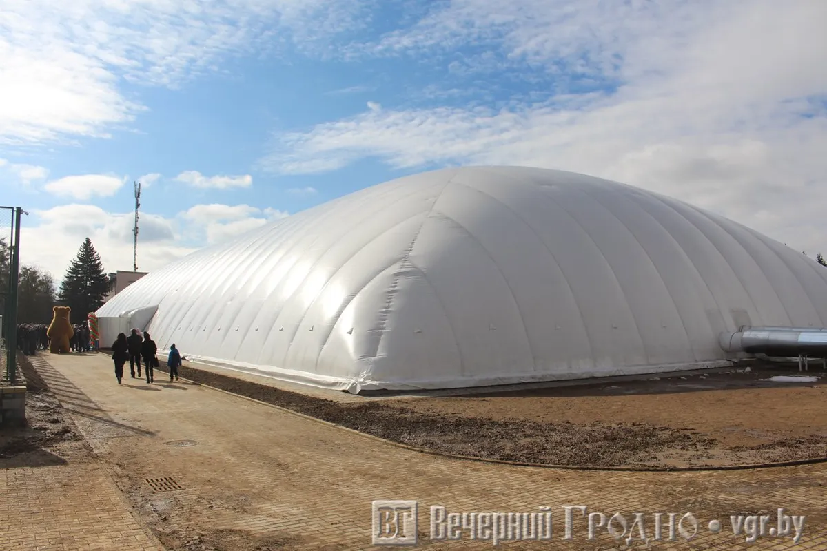 В Гродно на улице Горького за «Аквацентром» открылся новый теннисный центр. Заниматься спортом здесь можно круглый год, так как сооружение — воздухоопорная конструкция, где есть трехслойное покрытие купола и система «Смарт-дом», которая позволяет дистанционно контролировать температуру на кортах, вентиляцию и другие функции купола.