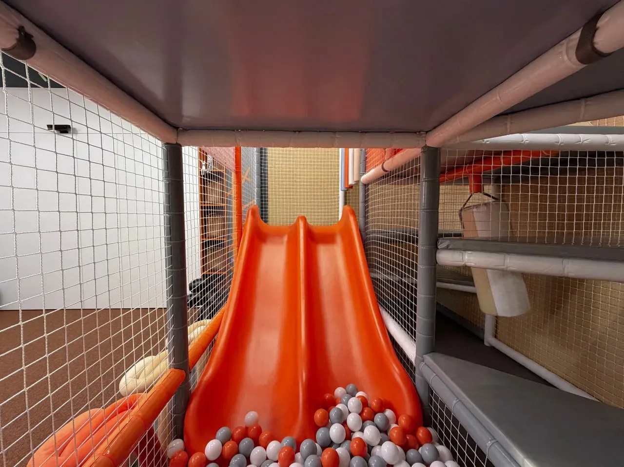 Двухуровневый мягкий лабиринт с безопасным сухим бассейном.