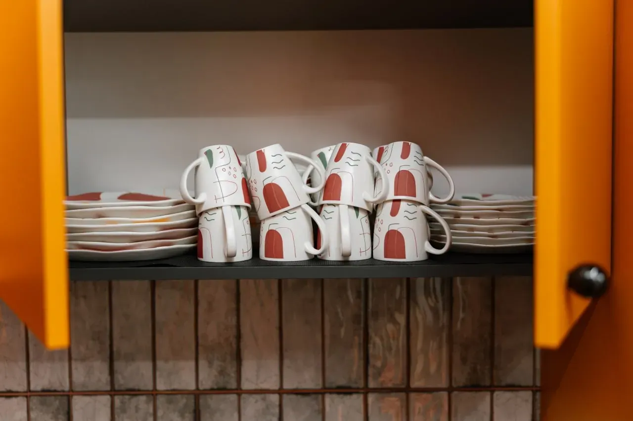 Уютная банкетная комната со всей необходимой посудой, чайником и микроволновкой.