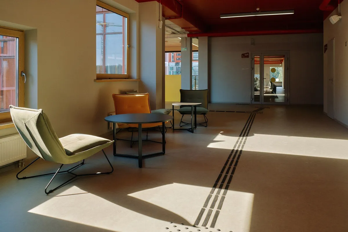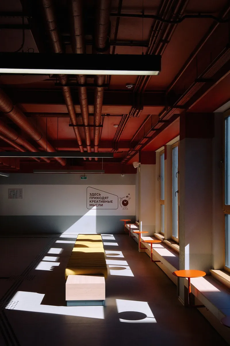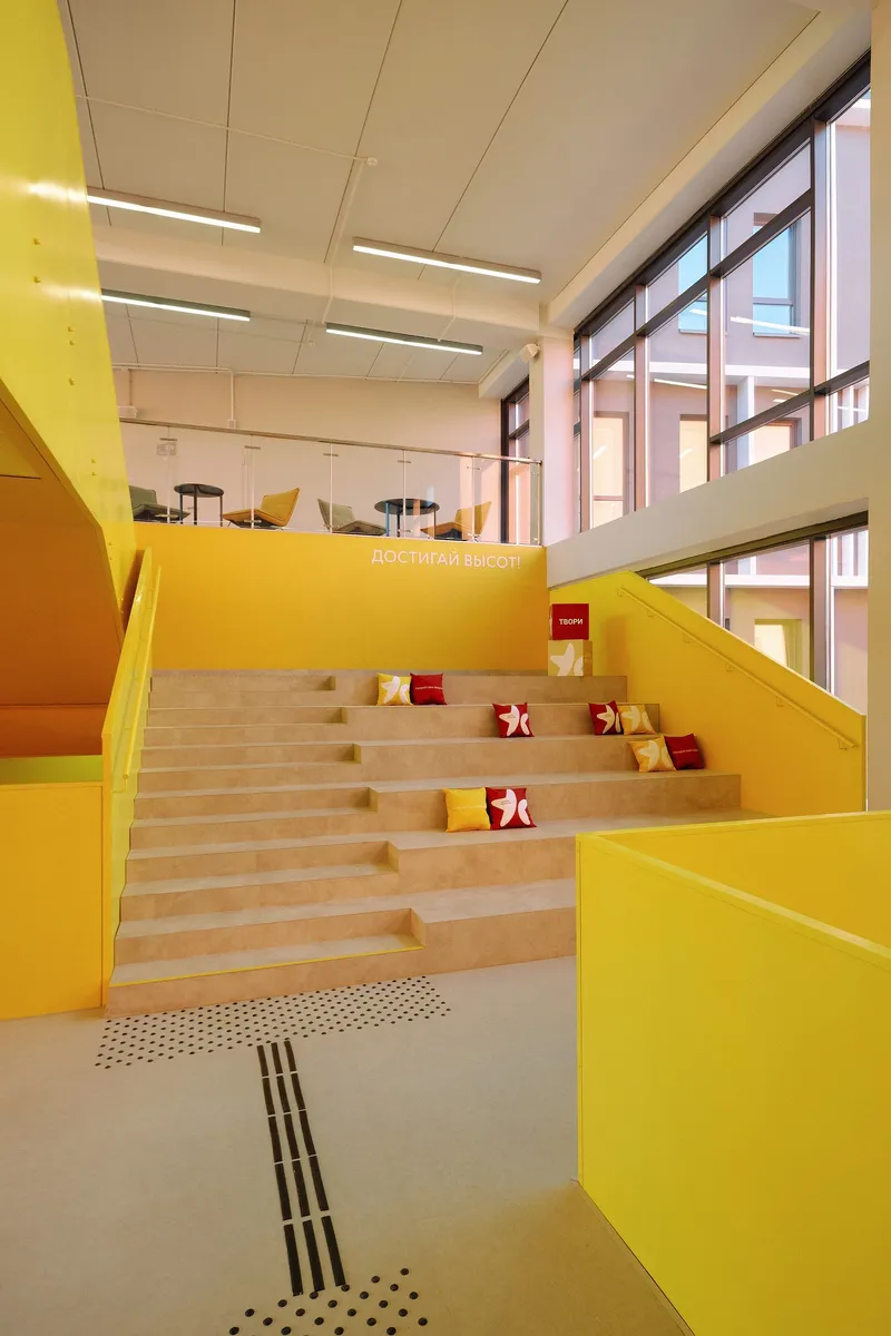 Школа посвящена талантам. Для этого проектировщики создали специальные пространства: амфитеатр для будущих музыкантов, медиацентр для юных блогеров и магнитная стена-паззл. На переменках можно будет сыграть в настольный теннис, а многофункциональные маркерные доски помогут в общении и совместном решении сложных задач. В выставочной зоне будут выставлять картины и арт-объекты.