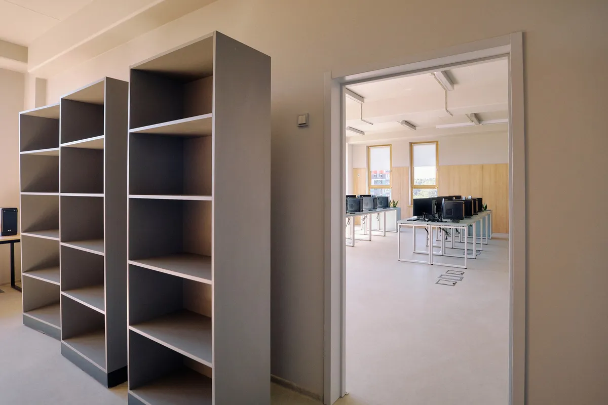 В сентябре в школе начнутся занятия: будут работать 69 классов, в том числе кабинеты информатики и лингафонные аудитории. Также обустроены игровые и мастерские для работы с деревом, металлом и тканью. Продумана кулинарная студия с большой кухней.