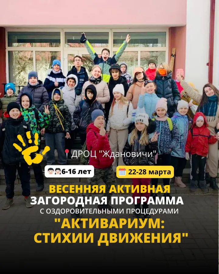 Когда школьная усталость достигает пика, лучшее лекарство — это смена обстановки и чистый сосновый воздух. Детский клуб приключений «Активные дети» открывает весенний сезон 2026 масштабным загородным проектом в ДРОЦ «Ждановичи». «Активариум» — это не просто лагерь, это глубокое погружение в игровую среду, где каждый день посвящен одной из стихий: Земле, Воде, Воздуху или Огню.