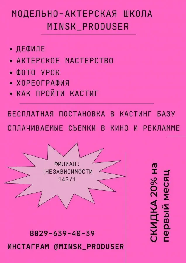 Модельно-актерская школа "Minsk_produser" открывает двери!