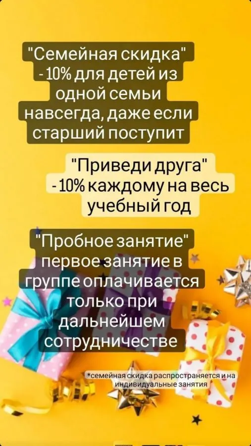 - 10% скидка для членов одной семьи.